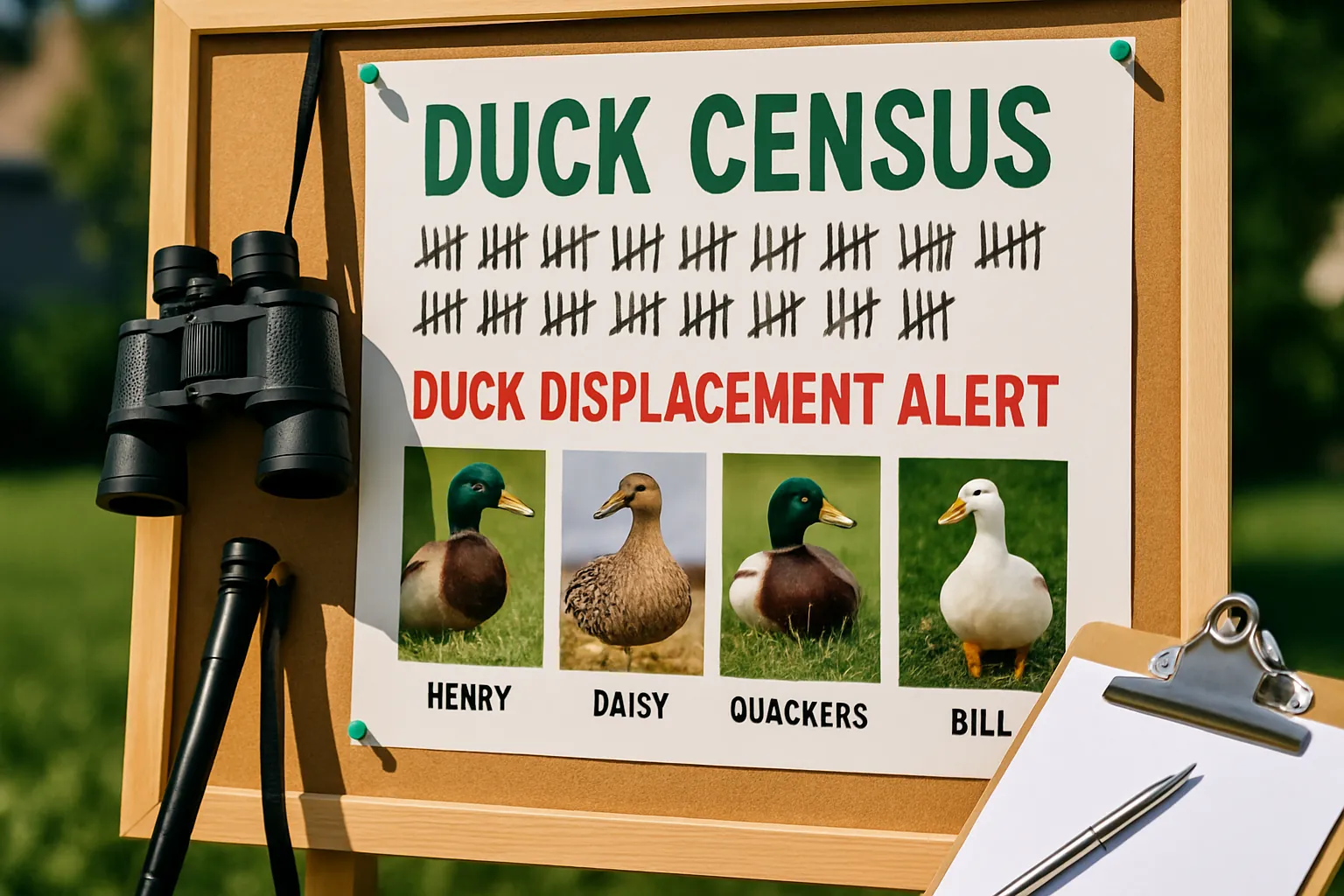 The supposed Fowl Relocation Program has electrified community boards and sparked emergency town meetings. Concerned residents have flooded city hotlines with questions about duck census numbers and avian rights. Local leaders have called for transparency and immediate action to halt any further bird movements until a full public inquiry can be completed.